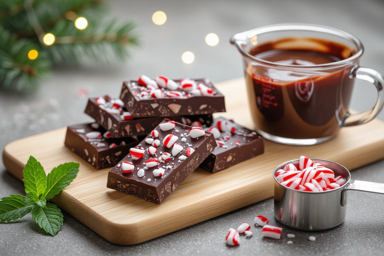 | Gathering Your Ingredients – What You’ll Need | You’ll want about 1 1/2 cups (roughly 260 g) of chopped keto chocolate or chips, 2 tablespoons coconut oil so it sets with a good snap, and 1 to 1 1/2 teaspoons peppermint extract depending how minty you like it. For sweetness, powdered sweetener blends in way better than granular, and 2 to 3 crushed sugar-free peppermint candies or 1 to 2 tablespoons cacao nibs give you that classic bark texture without bumping carbs way up. |