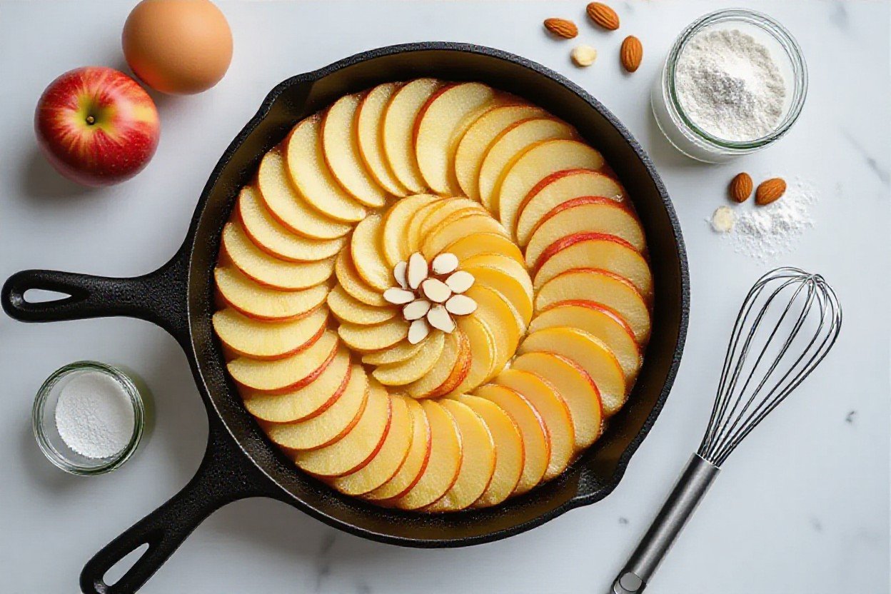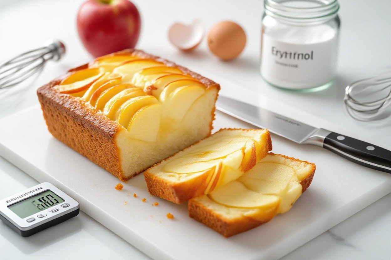 Standing at the counter with a bowl and a scale I whisk 3 eggs for roughly 2 minutes until slightly frothy, then add 120g almond flour, 40g erythritol, 1 tsp baking powder and 1 tsp vanilla and fold gently – overmixing will tighten the crumb. I stir in 60g sour cream (or Greek yogurt) for moisture, then fold in two thinly sliced medium apples so the batter-to-apple ratio stays balanced.